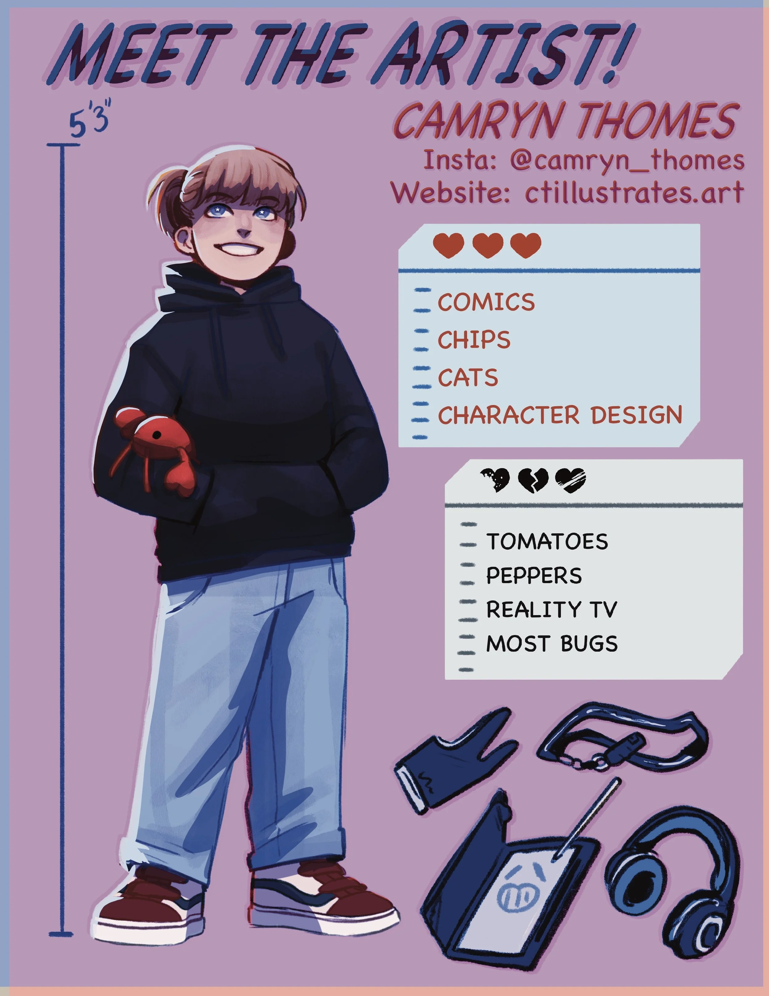 When I was younger, I was initially inspired to become an illustrator by reading comics like Garfield and Big Nate. Then, I decided to attend MECA&D to pursue an art career. In 2023, I took a graphic novel class that gave me the confidence and skill to write and illustrate my very first comic, solidifying my passion for storytelling.